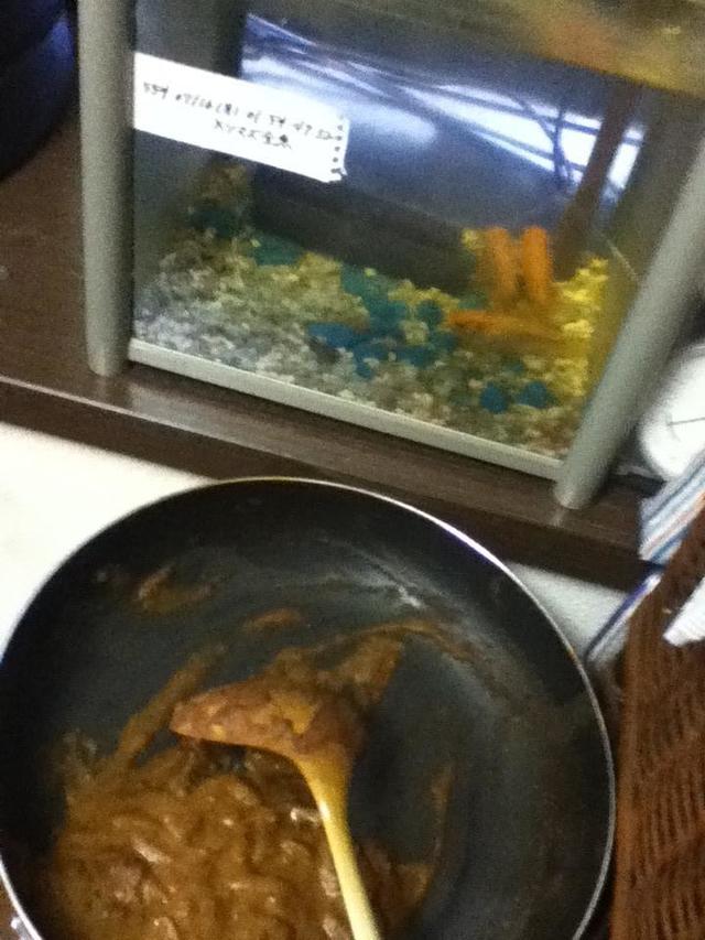 どうやら金魚の水槽の水でカレーを作ったらしい